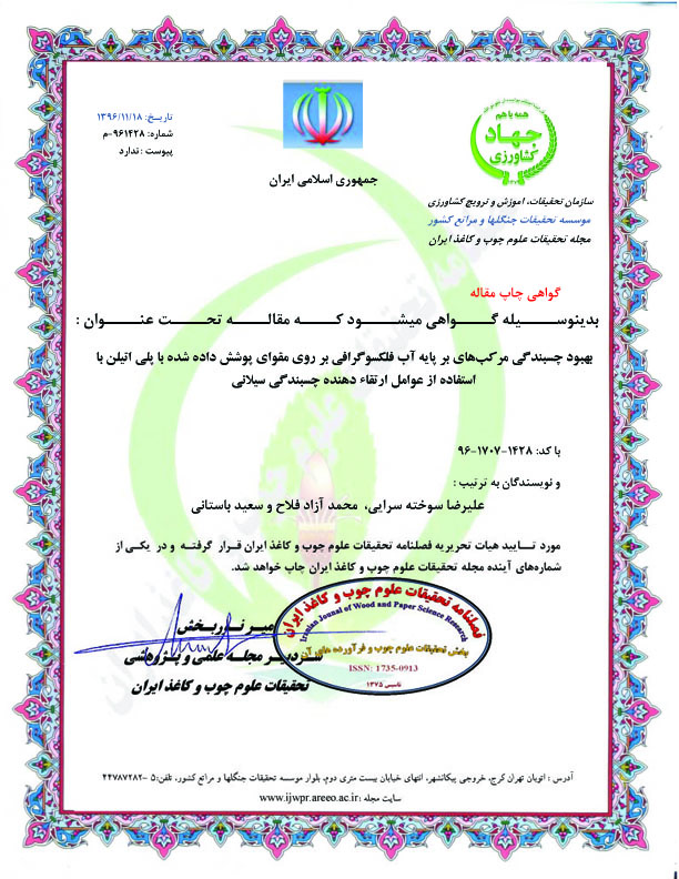 - Rassam, G., Azadifard, M., Kargarfard, A. and Fazeli, F., 2014. Investigation the possibility of particleboard manufacture using corn stalks. , Iranian Journal of Wood and Paper Science Research. 28(4): 609-623.